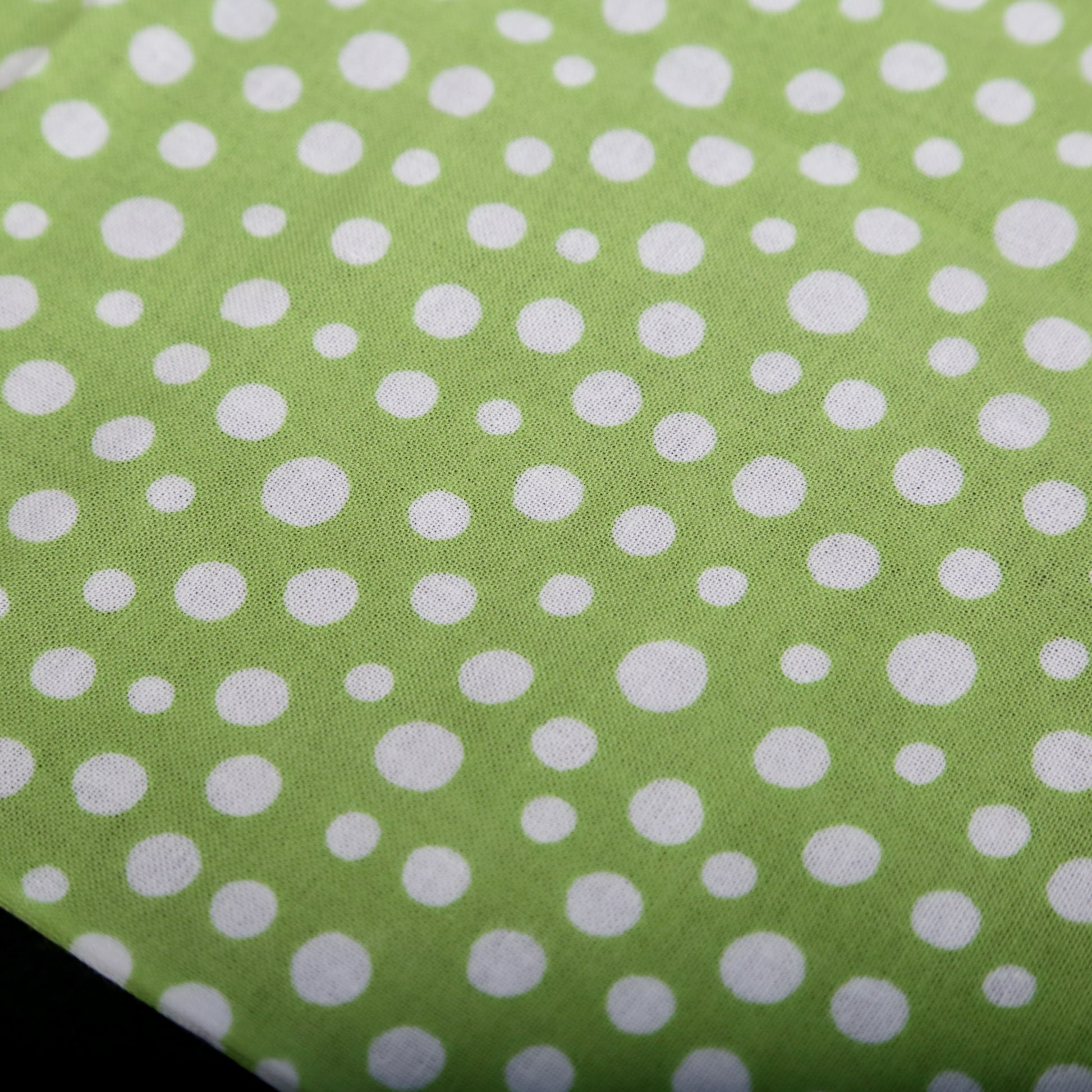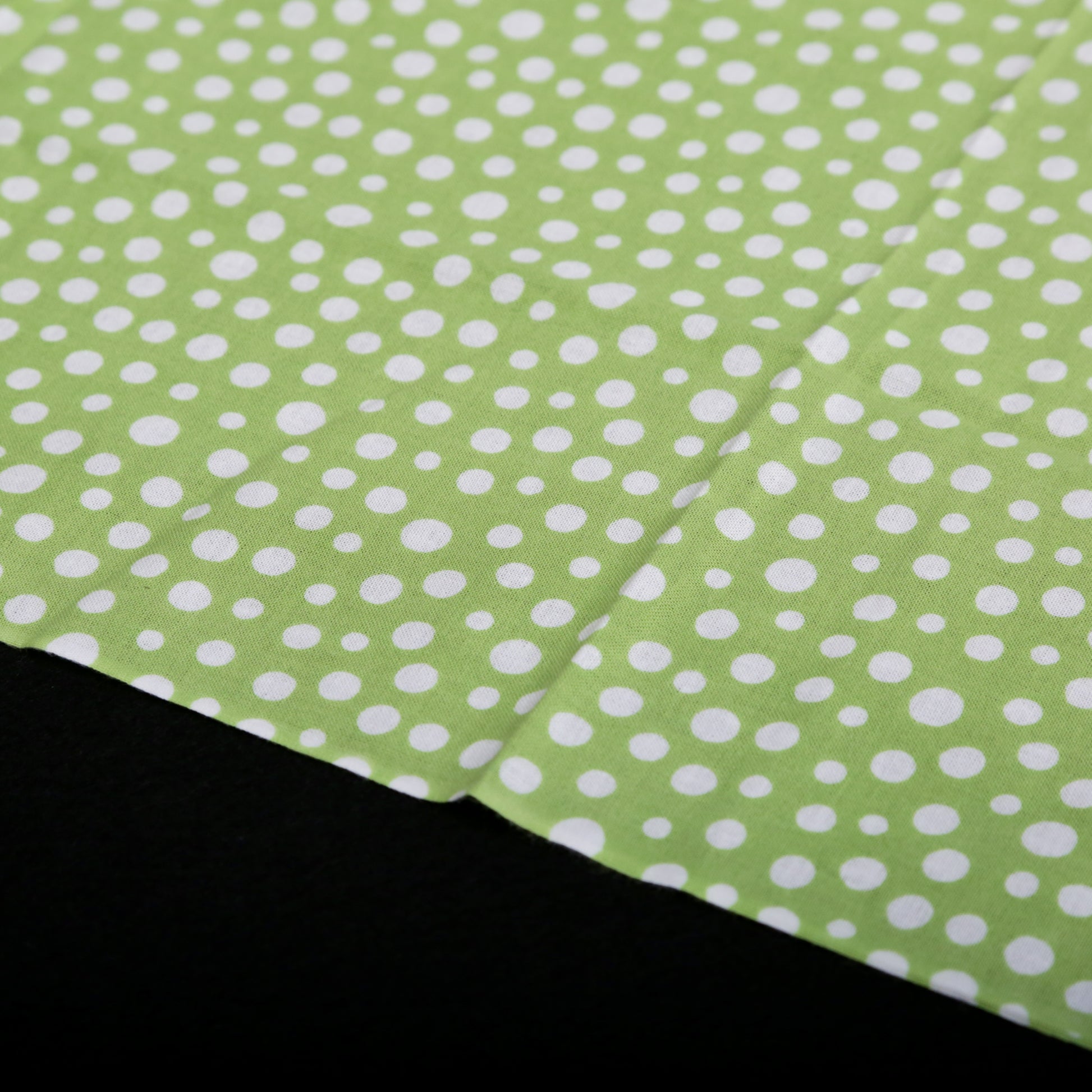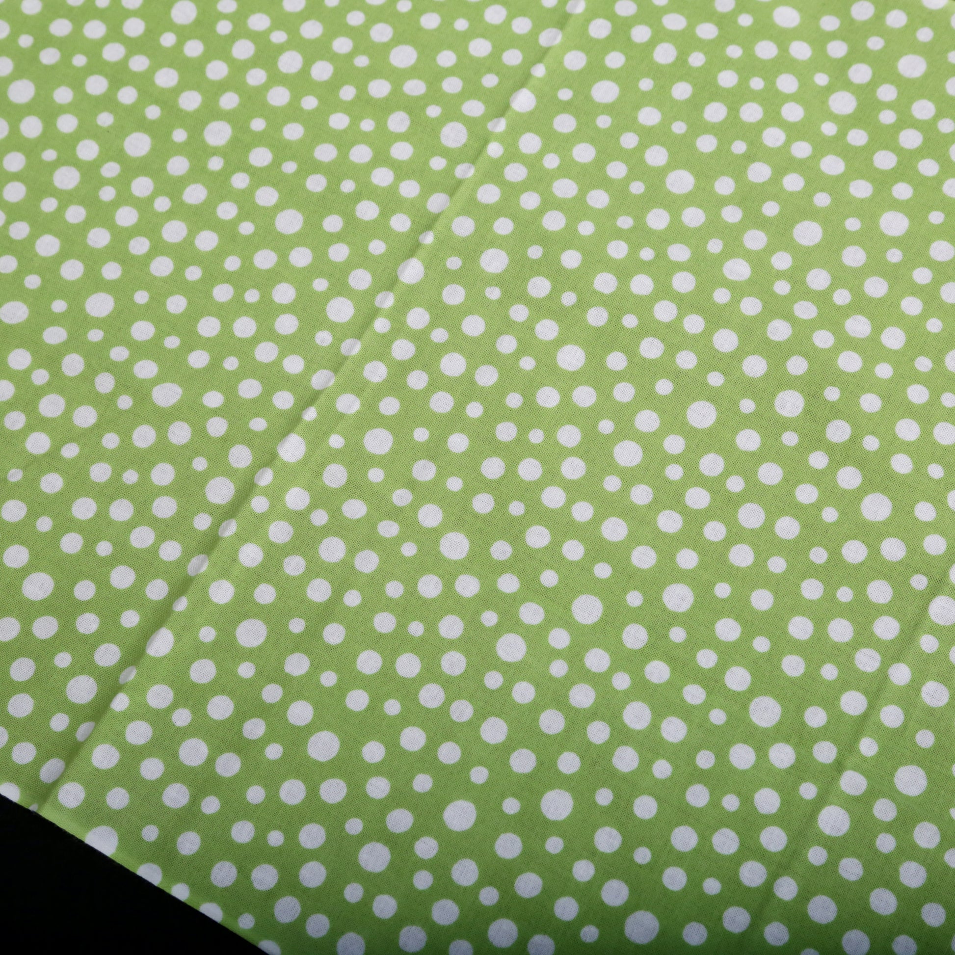 日本古来のシンプルな柄で「霰(あられ)」を表現したものです。白い生地に大小のあられ紋様を全面に染めています。霰紋様は、途切れることがないため無限の広がりといった意味が込められています。の裃かみしにも用いられました。現代でも小紋の1つとして人気の柄です。色は、わかくさいろ。あの「ずんだ」の美味しそうな色です。注染の柔らかい表情と楽しみ、とても和を感じる手拭いです。