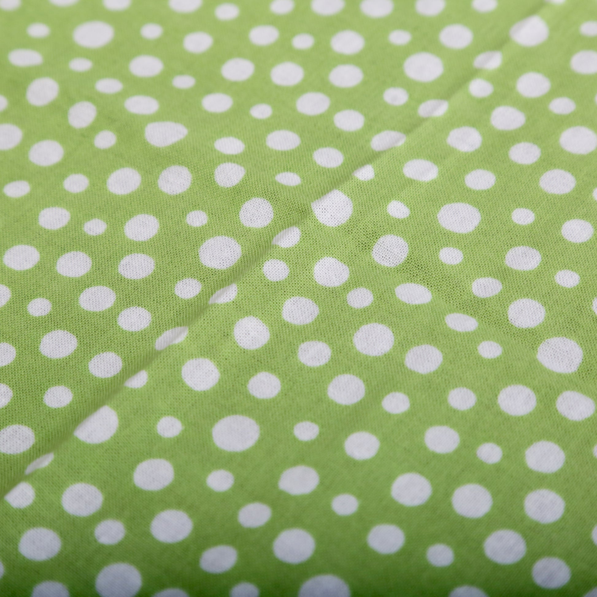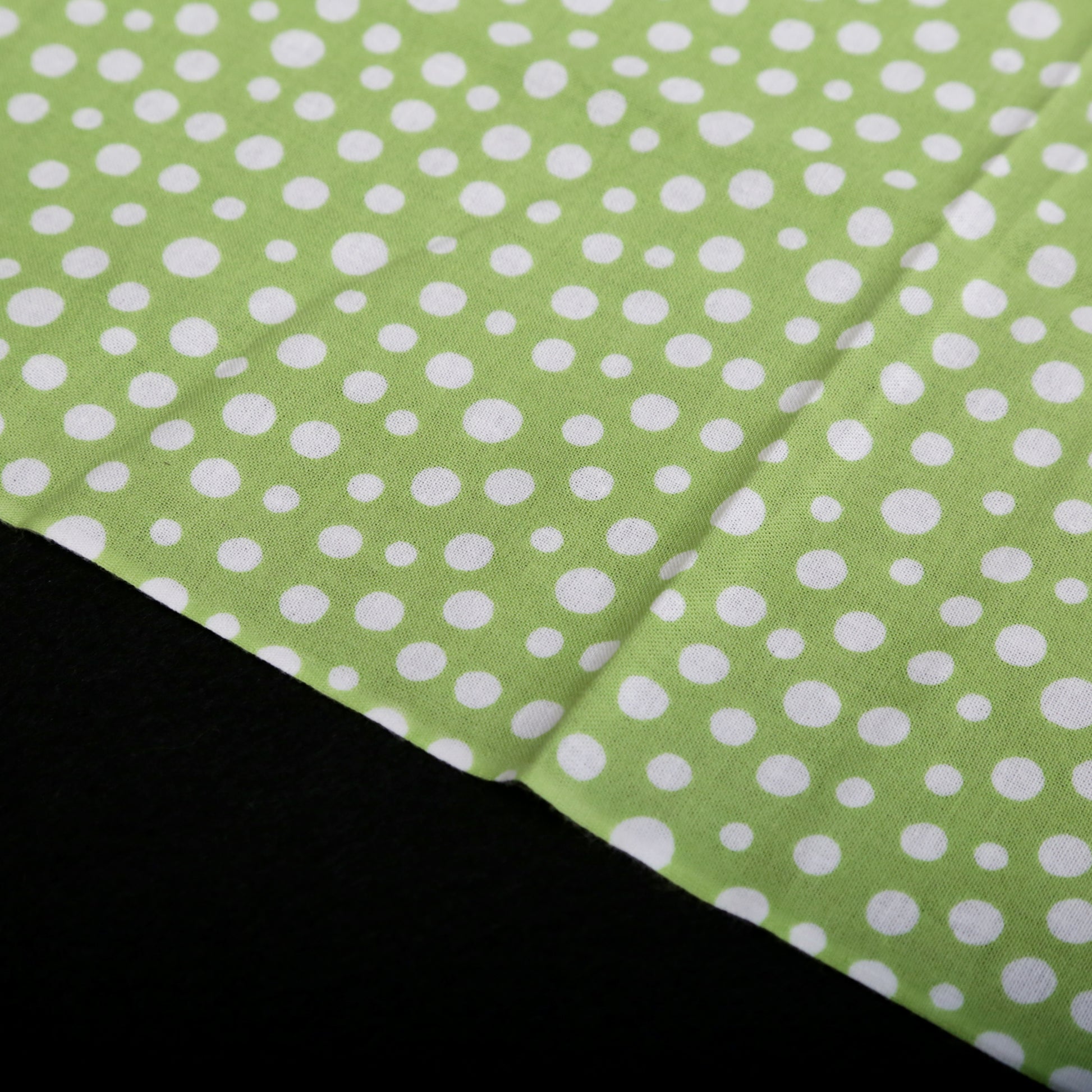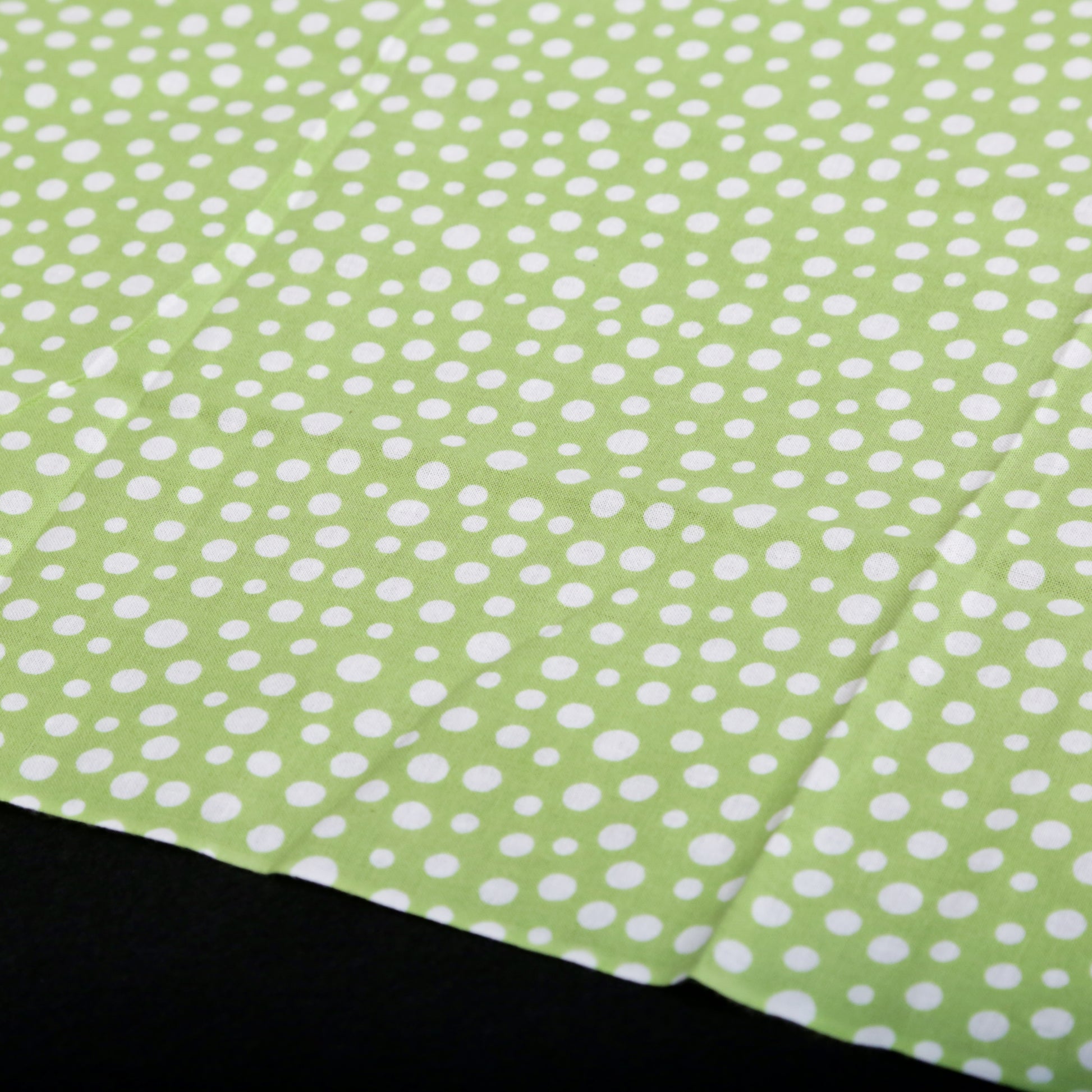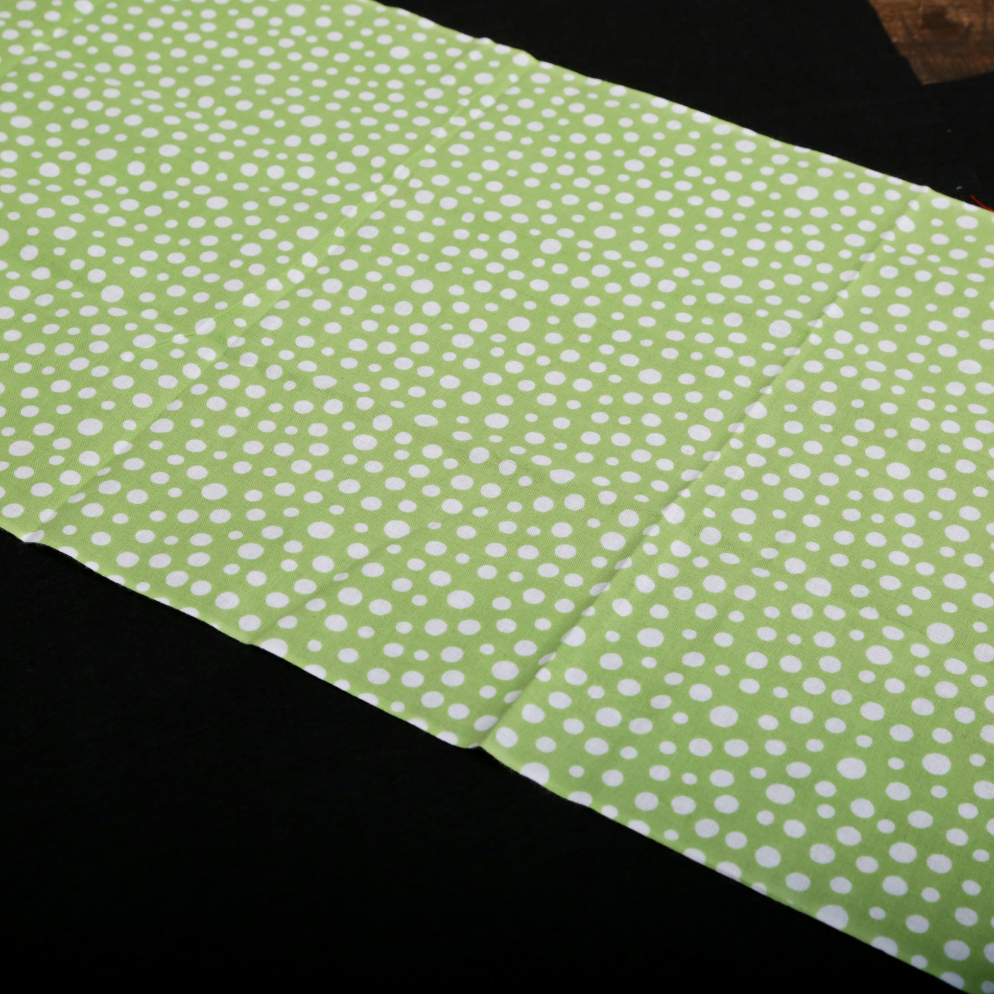 日本古来のシンプルな柄で「霰(あられ)」を表現したものです。白い生地に大小のあられ紋様を全面に染めています。霰紋様は、途切れることがないため無限の広がりといった意味が込められています。の裃かみしにも用いられました。現代でも小紋の1つとして人気の柄です。色は、わかくさいろ。あの「ずんだ」の美味しそうな色です。注染の柔らかい表情と楽しみ、とても和を感じる手拭いです。