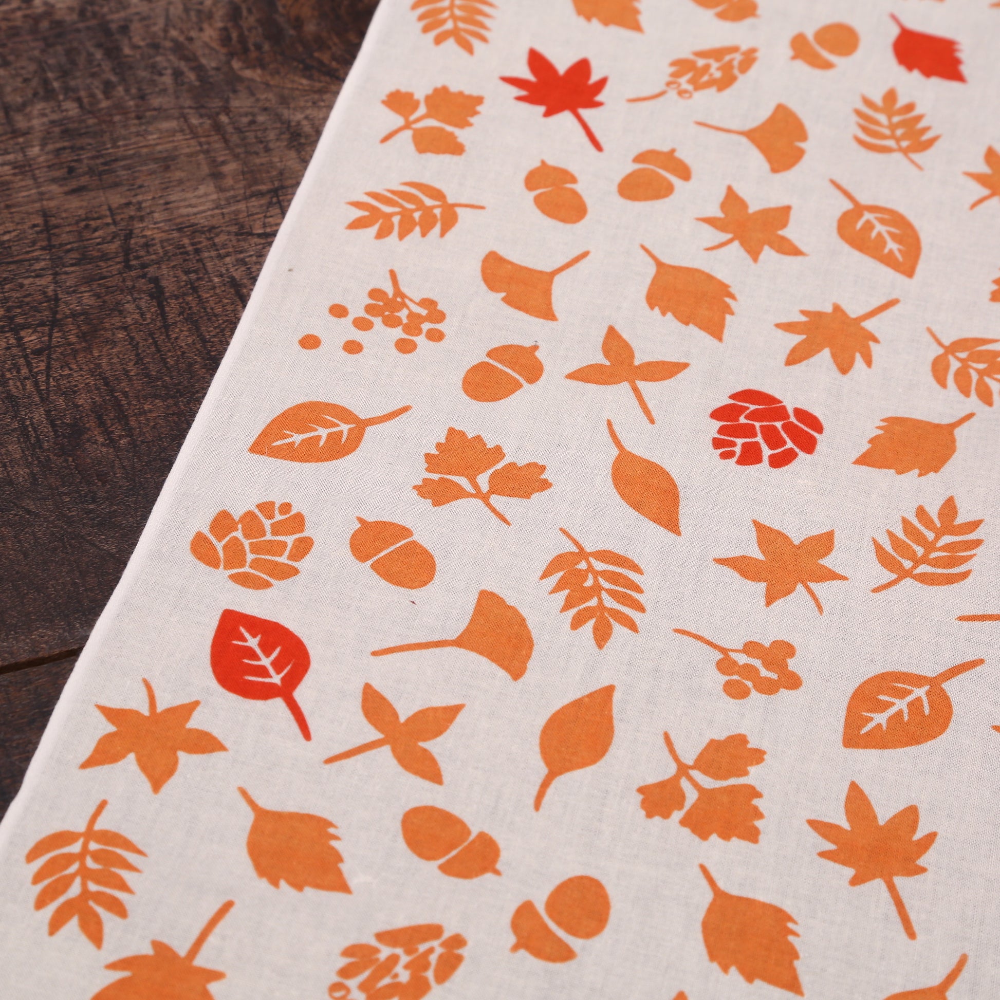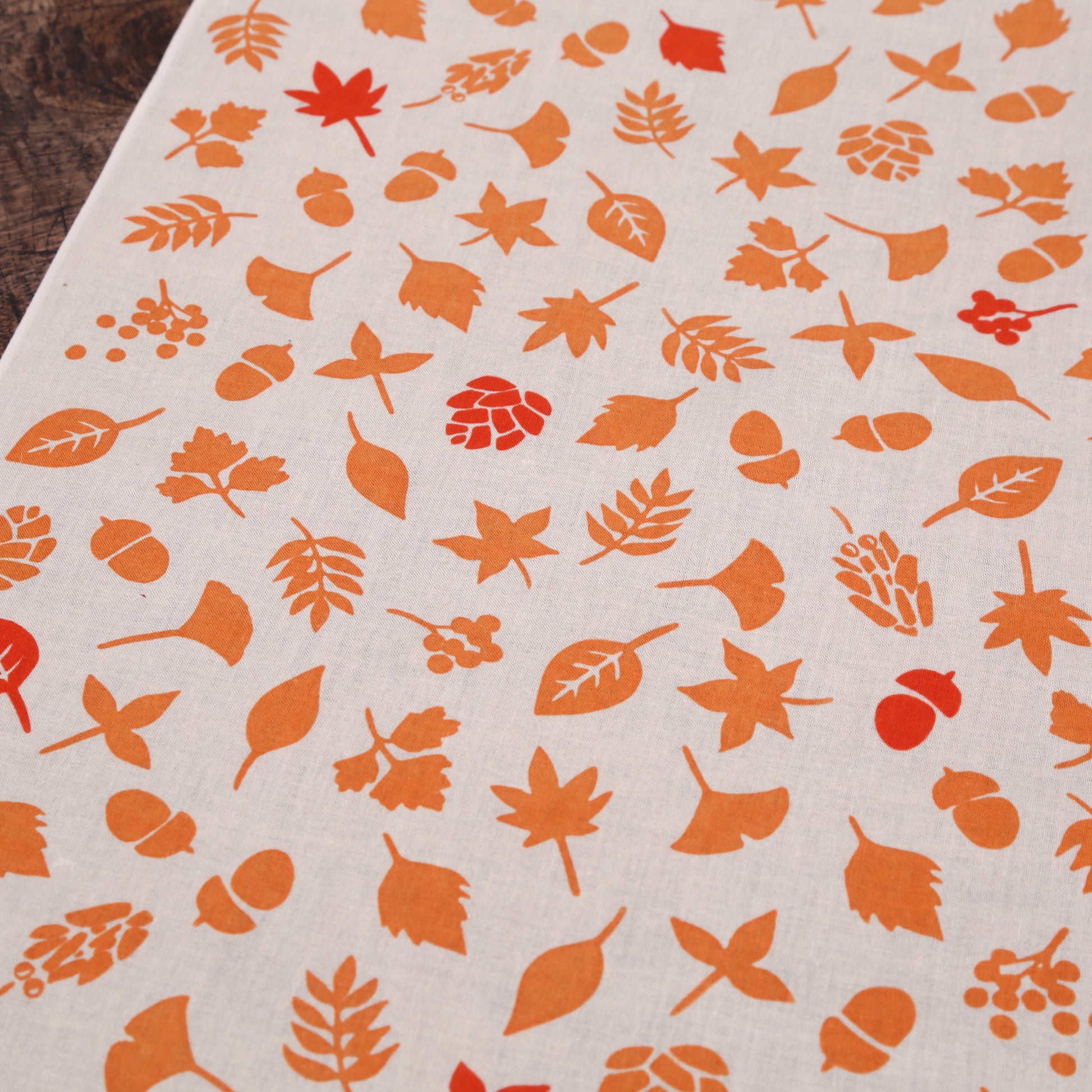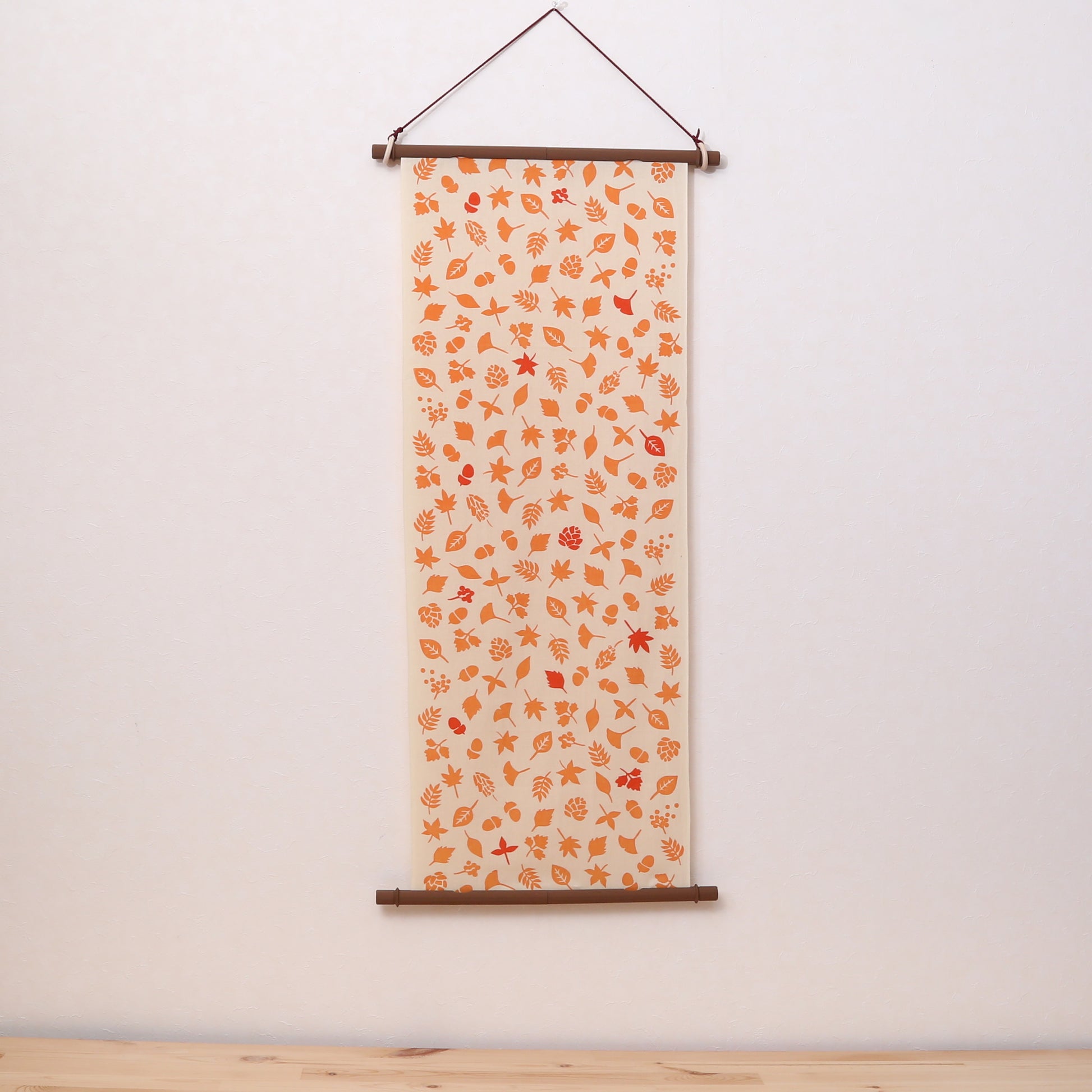 秋の落ち葉を少し艶やかめの色で表現しました。いろいろ多用途に使える小紋柄です。